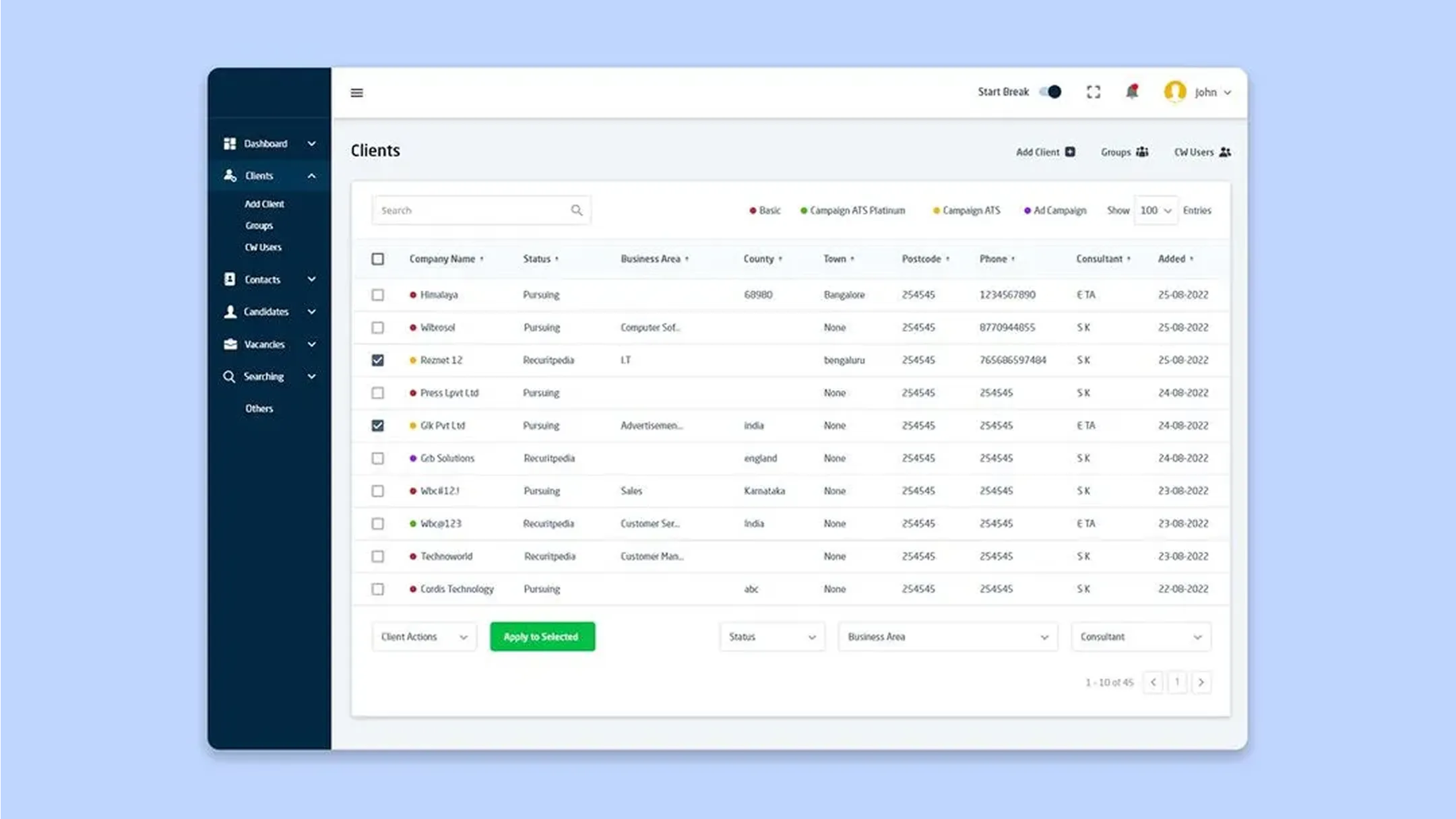 The self-service portal for clients improved the efficiency of the recruitment process by 40%.