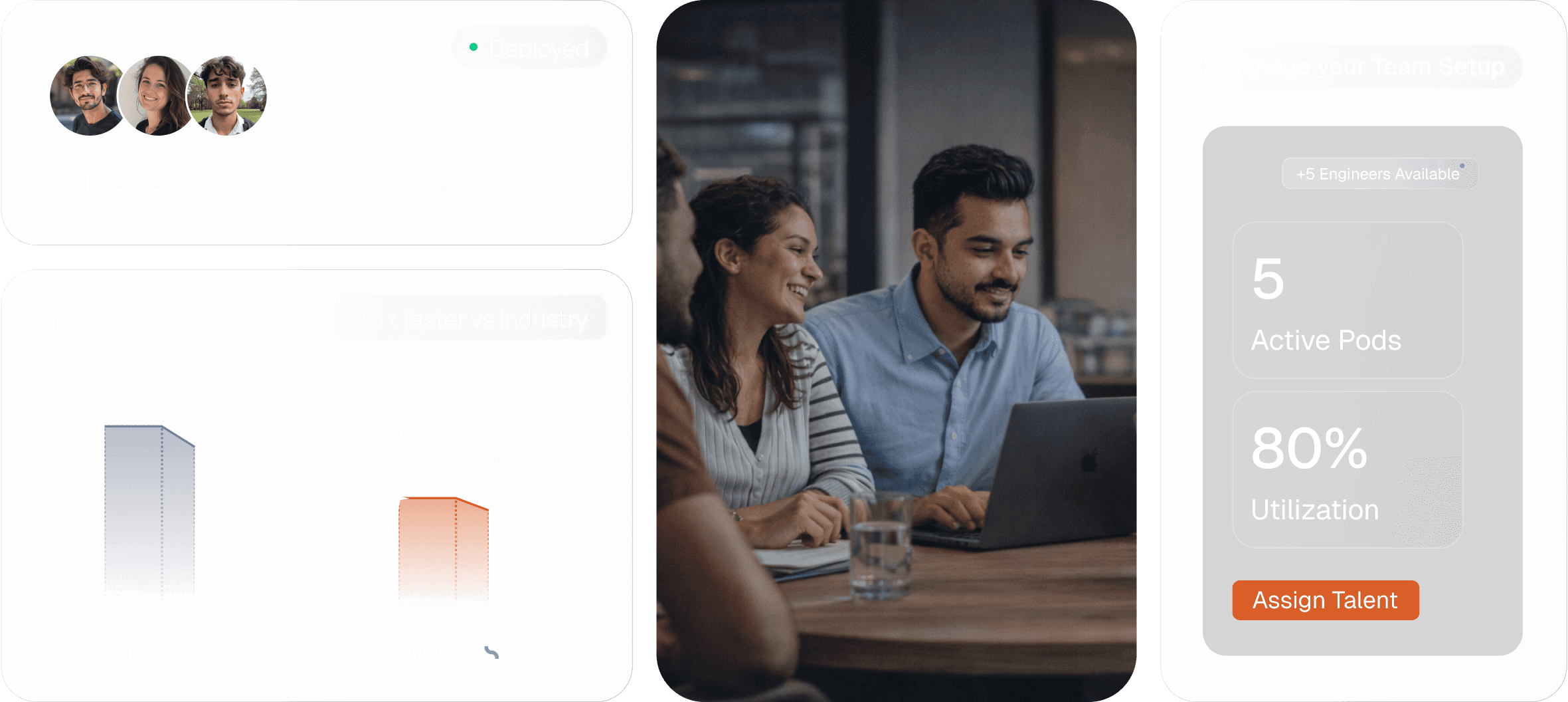 We shortlist top 1% India-based talent via vetted vendor network. It’s like having 5 partners sourcing and building your team, while you get the convenience of working with just CorridorX.